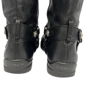 Coach Womens Size 7.5B Dafney Leather 15" Riding Boots Black Engineer Harness
