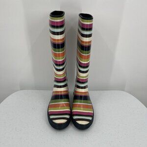 Coach Womens Striped Rain Boots Multicolor Rubber Size 6B