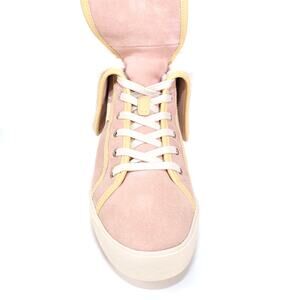 Coach Womens Suede Fold Over Sherpa High Tops-Womens 8.5-Vanilla / Pale Pink-NIB