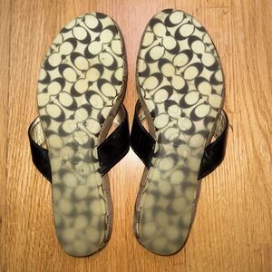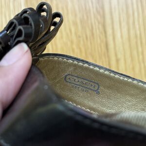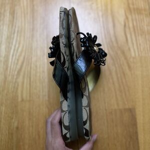 Coach Women's Suki Fringe Flower Sandals Skye Patent Signature C. Color Brown. Size 8B. Some normal signs of wear.