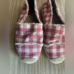 Coach Womens Sz 8.5 Celina Espadrilles Gingham plaid slip Pink Beige Original