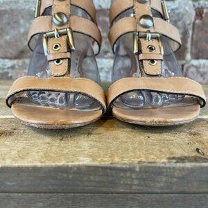Coach Womens T Strap Sandals Stiletto Leather Tan Size 9.5 B