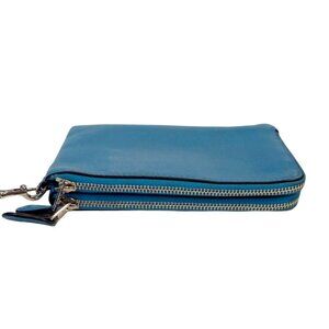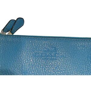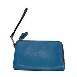 Coach Women's Turquoise Pebbled Leather Double Zip Wristlet Bag