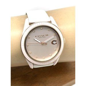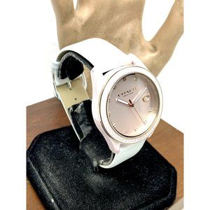 Coach Women's Watch 14503264 Pink Ceramic Case Quartz 36mm White Leather…