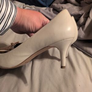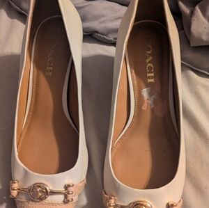 Elegant and stylish, these Coach women's pumps feature a sleek white leather design. Perfect for any occasion, they offer both comfort and sophistication. wear shown in pictures