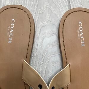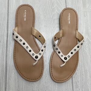 Coach Women's White & Tan Cottage Carmine Soft Vegan Leather Thong Sandals Size 11