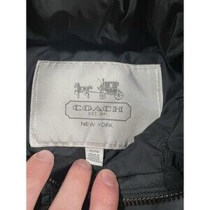 Coach Womens XS Down Puffer Coat Coyote Fur Trim Hood Jacket Black Quilted. Condition is Pre-owned - Excellent. Shipped with USPS Ground Advantage.
