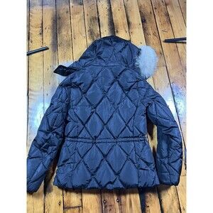 Coach Women’s XS Down Puffer Coat Coyote Fur Trim Hood Jacket Black Quilted
