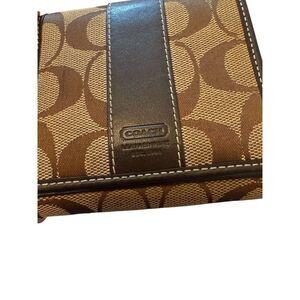 Coach Womens Brown Signature C Logo Leather Canvas Card Snap Bifold Wallet Small