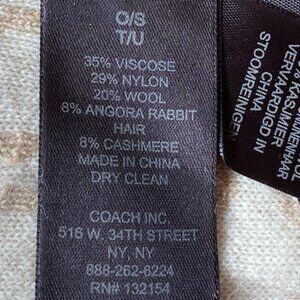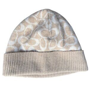 Coach Wool Cashmere Angora Signature Logo Hat Cream Tan Cuffed Beanie Winter
