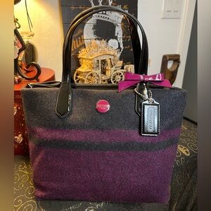 This stylish women's tote bag features a sophisticated purple and black design, perfect for any occasion. The elegant look is complemented by high-quality materials and a chic finish.