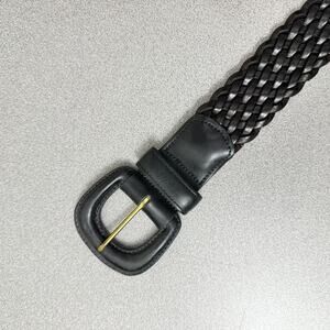 This listing is for a Coach Womens Black Woven Leather Belt. Leather covered brass buckle. Approx 1.5in wide.