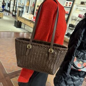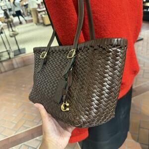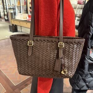 Coach Woven Leather Swing Tote Carryall Shoulder Bag Lady CBF83 Women Maple