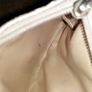 Coach wristlet! Tan and silver. Used but in great condition. Only flaw is small makeup stains (#girlproblems) inside purse as seen in picture 3. Bundle for even better savings 💕 *I consider all reasonable offers!*