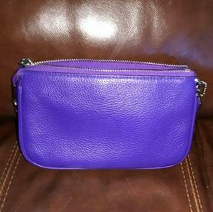Like new condition! Lobster claw on one side to make Wristlet loop or to attach to another bag, zip closure, long slip pocket, 2 credit card slots.