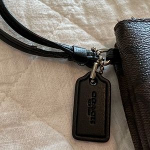 This leather Coach wristlet is gently loved, with lots of life left! Two large zippered sides have plenty of space to store credit cards, cash, and other small essentials. The cover photo color was edited slightly in order to show pattern, all other photos are un-edited. Slight wear is shown in last 2 photos.