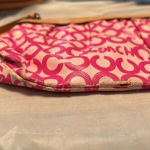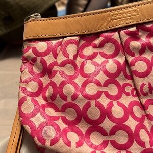 Pink coach wristlet with leather trim. Well loved but a lot of life left. Keychain still attached.