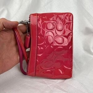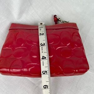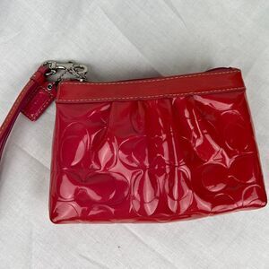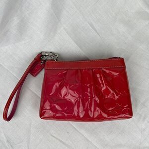 Coach Wristlet Crimson Red Patent Leather Signature C Top Zip Coin Purse Makeup
