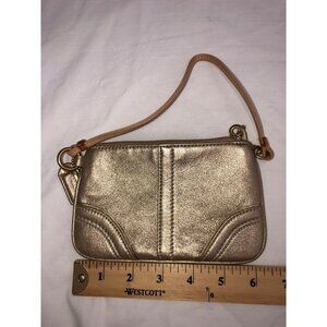 Coach Wristlet Gold Soft Leather Wallet Micro Purse Metallic Unisex