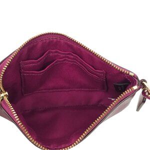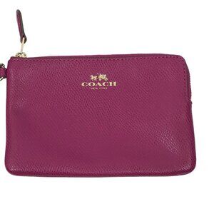 Coach Wristlet Pebble Leather Corner Zip Top Wallet Logo Hangtag Deep Berry E168