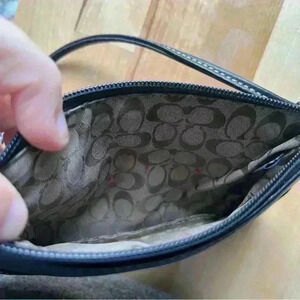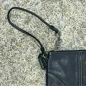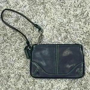 Coach Wristlet Purse Black Soft Leather Zip Top Small Fashion Bag Side Handle