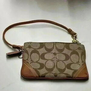 Coach Wristlet Signature Brown Jacquard with Saddle Brown Leather Trim