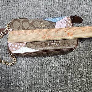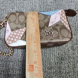 Coach Wristlet Signature Star Patchwork Brown Gold Accent