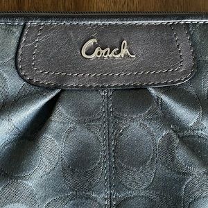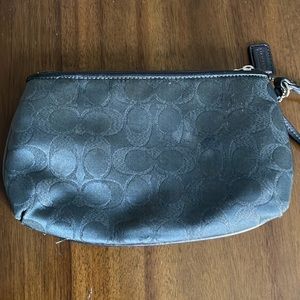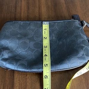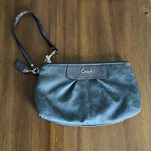 Coach Signature C Gray Wristlet Wallet Purse. Inside purple color. Please note there is some wear on the strap. Thanks for looking!
