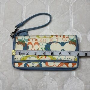 Coach Wristlet Wallet Multicolor Butterfly Print Canvas Blue Trim Zip Around