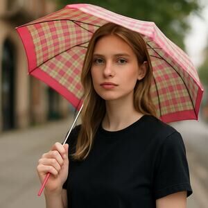 Coach Wristlet and UV Umbrella Set Plaid Gold/Pink