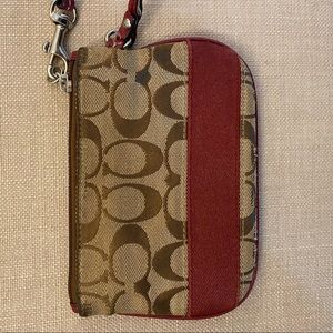 Coach Wristlet with Detachable Strap Vintage Brown and Red Monogram