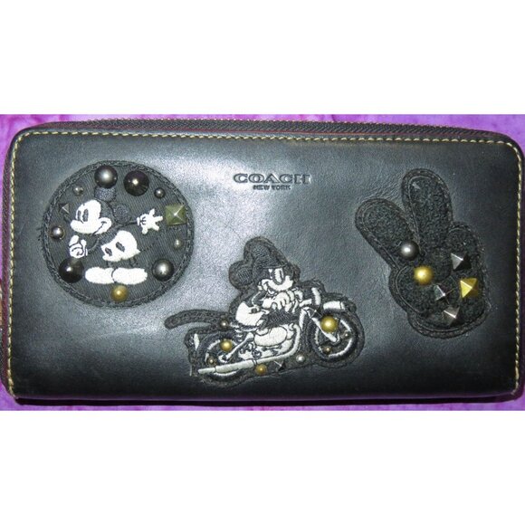 Coach X Disney Mickey Patches Limited Edition Accordion Zip Leather Wallet