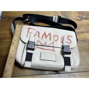 The Coach X Jean Michel Basquiat Track Crossbody in Pebble Leather is a stylish and versatile accessory suitable for both men and women. Made from high-quality leather, this crossbody bag features a unique design inspired by artist Jean Michel Basquiat. The beige pebble leather gives it a sophisticated look, while the convenient crossbody style allows for easy carrying on-the-go. Perfect for adding a touch of luxury to any outfit, this Coach X Jean Michel Basquiat Track Crossbody is a must-have accessory for fashion-forward individuals.pre owned good condition has a few little flaws nothing major we ship fast