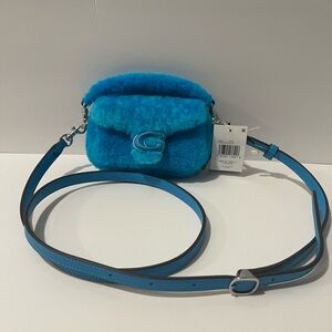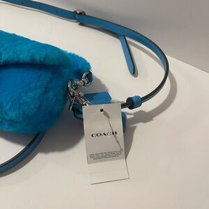 Coach mini blue fur bag. Lil Nas colllab. Stylish and vibrant blue fur women bag, perfect for adding a pop of color to any outfit.