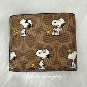 Coach X Peanuts 3 In 1 Wallet In Signature Canvas W/ Snoopy Print CBK56 Tan NWT