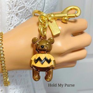 Coach X Peanuts Charlie Brown Bear Bag Keychain Charm #5398 NWT
