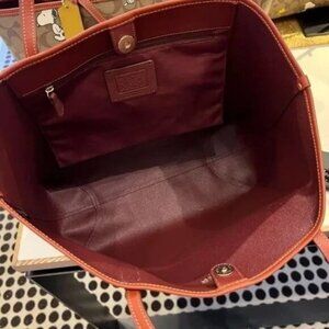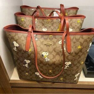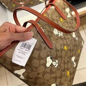 Coach X Peanuts City Tote In Signature Canvas With Snoopy Woodstock Print
