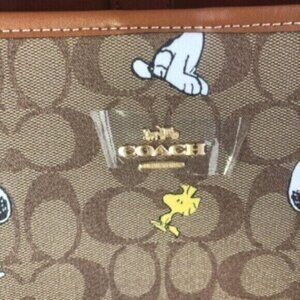 Signature coated canvas and smooth leather Inside zip pocket Snap closure Handles with 10" drop 13" (L) x 11 1/2" (H) x 6 1/4" (W) This special Coach x Peanuts collaboration combines our legacy of leathercraft with the playful attitude of the Peanuts crew.