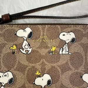 Coach X Peanuts Corner Zip Wristlet In Signature Canvas With Snoopy NWT CBS82