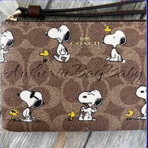 Coach X Peanuts Corner Zip Wristlet In Signature Canvas With Snoopy Print Wallet
