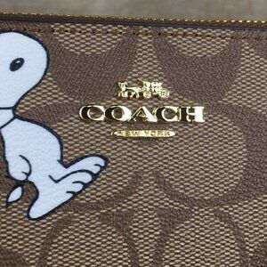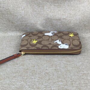 Coach X Peanuts Corner Zip Wristlet Wallet With Snoopy & Woodstock