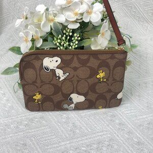 Coach X Peanuts Corner Zip Wristlet Wallet With Snoopy & Woodstock