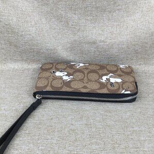 Coach X Peanuts Corner Zip Wristlet Wallet With Snoopy & Woodstock