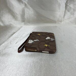 Coach X Peanuts Corner Zip Wristlet Wallet With Snoopy & Woodstock