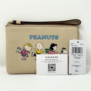 Coach X Peanuts Corner Zip Wristlet With Snoopy & Friends Motif Ivory CF213