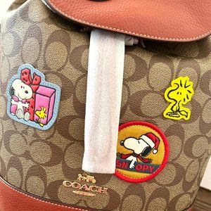 Coach X Peanuts Dempsey Drawstring Backpack In Signature Canvas With Patches