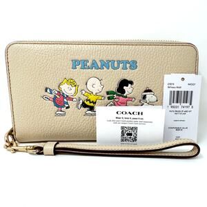 Coach X Peanuts Long Zip Around Wallet With Snoopy And Friends Motif Ivory CF219