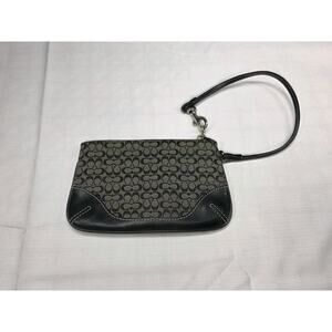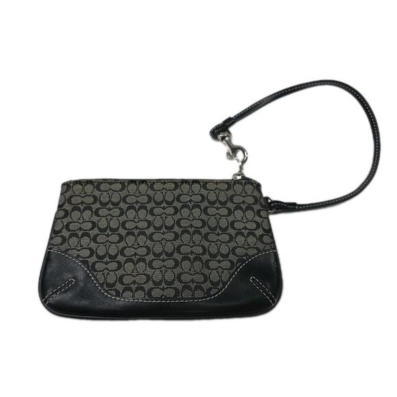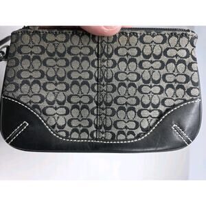 Coach Y2K Black Gray Signature C Small Wristlet Wallet Monogram Canvas & Leather