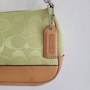 Coach Y2K Demi Baguette Bag Wristlet Signature Monogram Yellow Leather Trim 6094