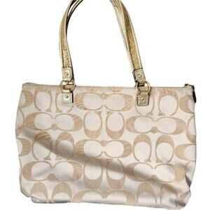 Coach Signature Floral Print Tote Bag – Gold Trim